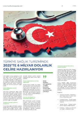 2025 yılında Türkiye; yaklaşık 2,5 mil- öncelikli ülkelere yönelik tanıtım lerin de kendi sağlık turizmi alanına