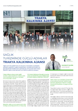yana Trakya Bölgesi’nde sağlık turizminin geliştiril- özel sağlık tesisleri ile sağlık turizmi aracı kuruluş ğinde eğitimler düzenledik. Firmalar genelde ilk